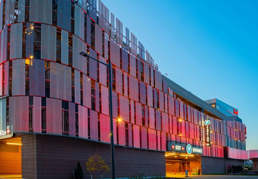 EDA Contractors was tasked with fabricating and installing 90,000 square feet of panels, including 15,500 square feet of custom-designed and fabricated perforated metal panels from AMI for the casino/hotel’s parking garage.